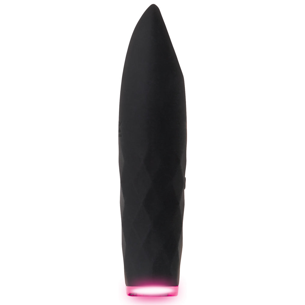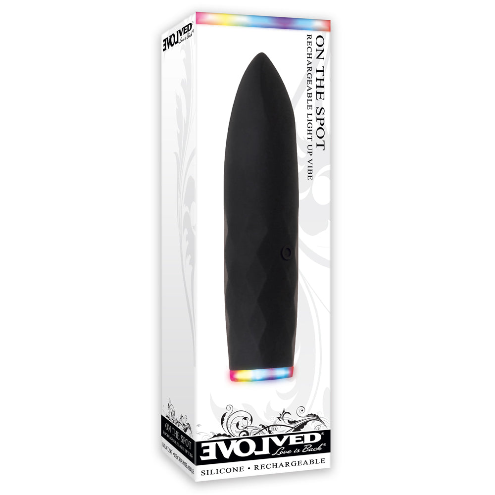 This slick & powerful little vibrating bullet has a flat, tapered edge and a smooth plane tip for pinpoint precise stimulation in 7 heavenly modes of vibration! The Evolved On The Spot Vibrating Bullet has an LED light at the base that changes colour with every function so you can easily keep track of your settings and a diamond textured base for secure grip and easy handling. Best of all, the silky-smooth silicone is waterproof for wet and wild fun in the shower or bath, and the On The Spot is also rechargeable for pleasure that never has to stop!