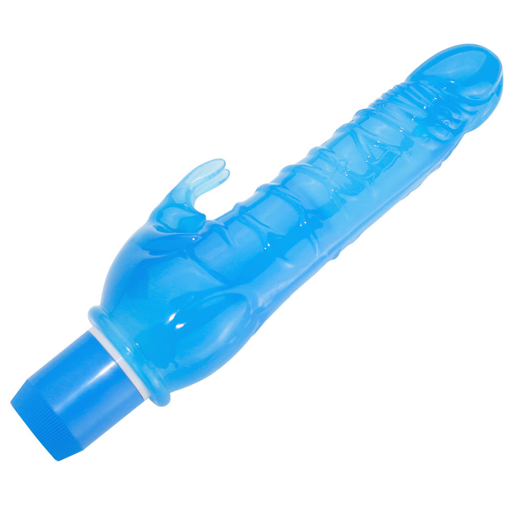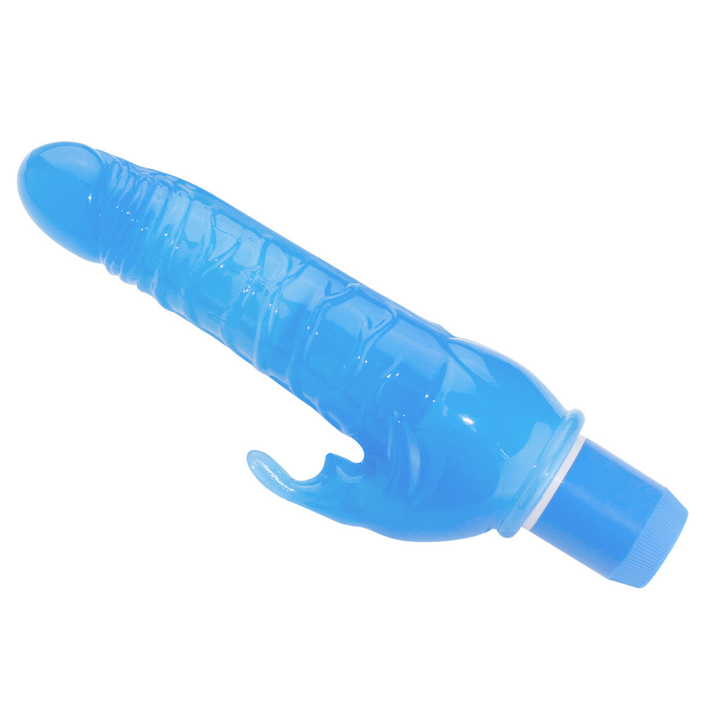 This rabbit vibrator is made from smooth TPE jelly that conforms to your body's movements and is sculpted with a vein-like ribbed texture to rub against your inner walls. It's topped by a phallic head that massages your G-spot perfectly and offers a realistic 'popping' sensation as you insert it into yourself. At the base of the shaft, a cute bunny uses its button nose and flickering ears to tickle your clitoris simultaneously when you bring the vibes to life! Simply twist the power dial underneath the vibrator and your toy will start climbing through the multispeed vibrations, letting you adjust them to your liking by rotating the dial back and forth until you find your ideal intensity!