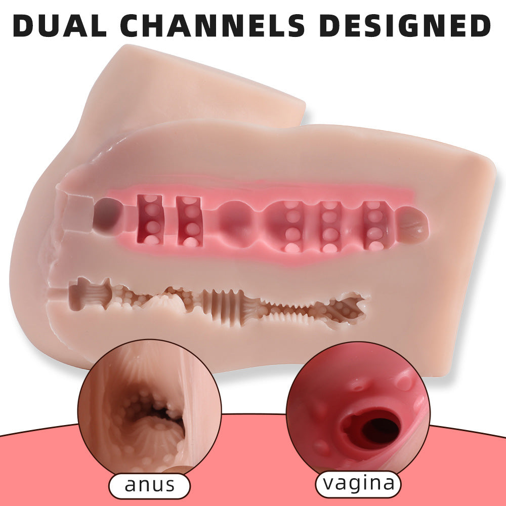 • Dual entries to enjoy (vagina topped by a pronounced clitoral hood + puckered anus)