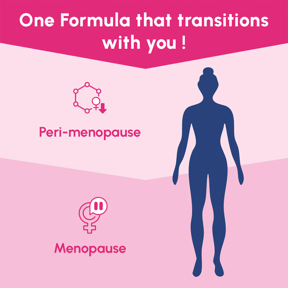 - All-in-one formula that can transition with you through peri-menopause, menopause & post-menopause stages