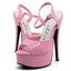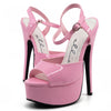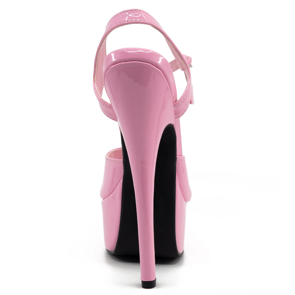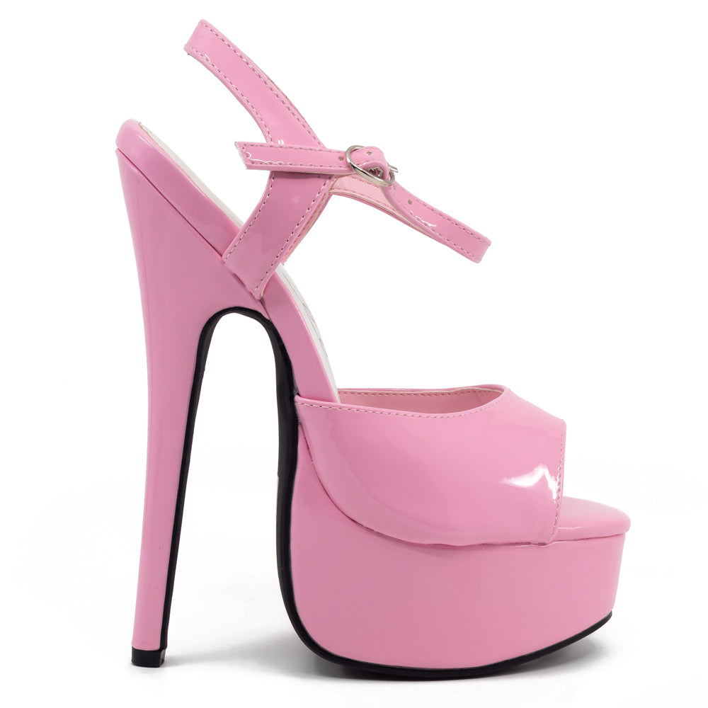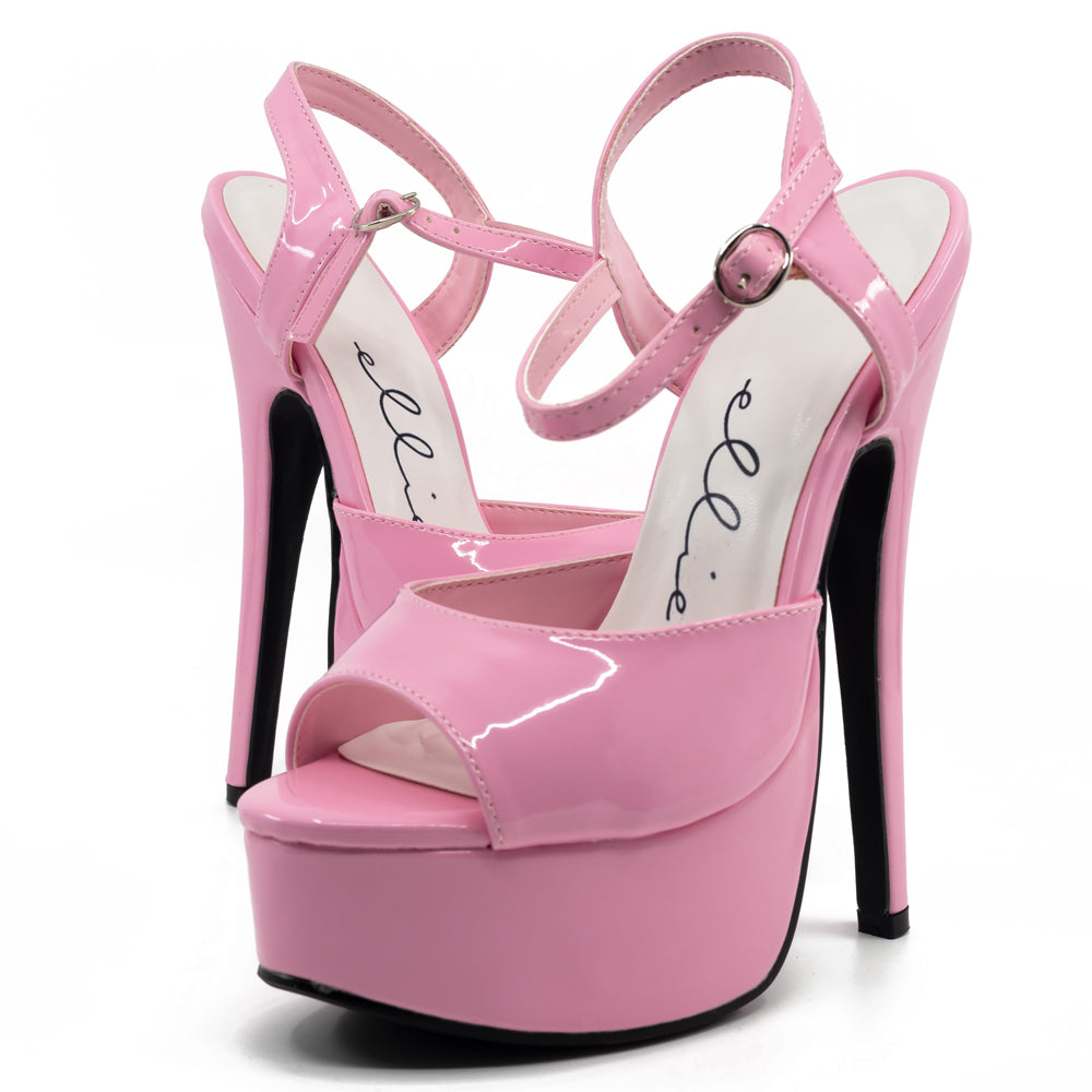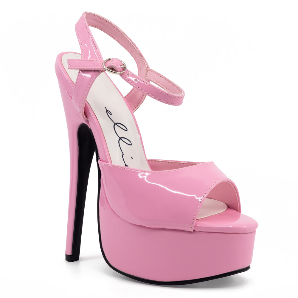Keep your onlookers' eyes on you in the Juliet 6.5" Stiletto Pink Patent Platform Sandals from the 652 range by Ellie Shoes...