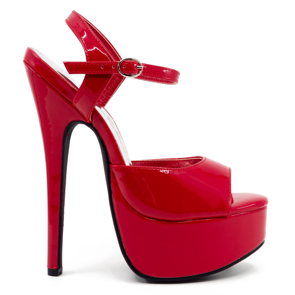These open-toe platform heels make your legs look oh-so-long with their 652 design that features a separate 6.5-inch stiletto heel and a 2-inch platform. The platform reduces the overall heel height for more comfortable wear while the curved toe box rocks forward to make it easier to walk in these towering heels. The whole shoe is made from vegan-friendly patent faux leather in a scandalous shade of red, with a thin ankle strap that won't break the long line of your elongated leg. The adjustable buckle closure gives you the perfect fit around your ankle while also keeping the shoe securely on your foot during even your most adventurous dance moves. The separate sole and heel are both adorned with textured rubber grips for more stability so you can show off all your best moves with total confidence!