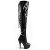Key features of the Pleaser Delight Corset Back Stiletto Thigh Boots - Patent Black:
