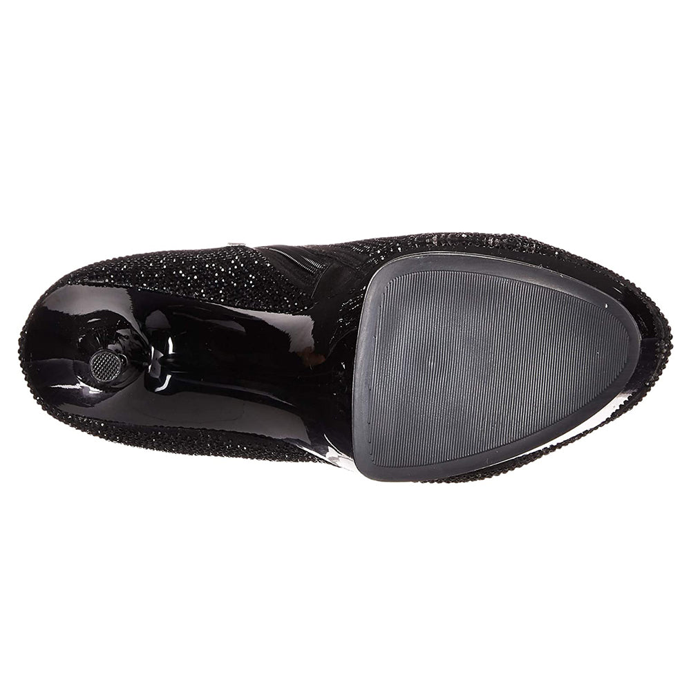 These black platform ankle boots were made to steal the show with their glitzy rhinestone-covered upper and shiny patent platform and heel details. They're the perfect shoe for making your moves across the dancefloor or around a pole, with the 609 design of a 6-inch stiletto heel to elongate your leg while the 2-inch platform angles its toe box close to the ground and makes the Andi Stiletto Booties more comfortable to walk in. The sole and heel both have textured rubberised grips for more stability as you strut your stuff while the side zip lets you put these shoes on and take them off with ease. Best of all, the plush insole keeps you comfy for ages and the one-piece heel and platform are both made from the same solid base for extra sturdiness you can count on!