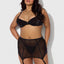 House of Desire Raquel Mesh Satin Bra, Garter Skirt & Thong - Curvy