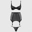 Key features of the House of Desire Raquel Mesh Satin Bra, Garter Skirt & Thong - Curvy:
