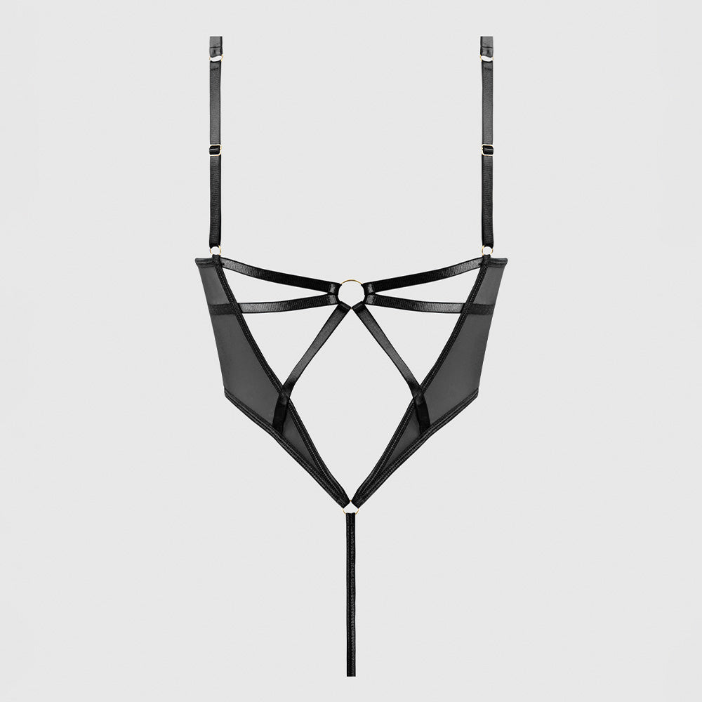 And of course, we can't forget about that showstopper rear — a cage strap detail made from silken elastic spreads out over your back, which has a plunging cutout to expose more skin and streamline your curves. The straps connect to a sturdy metal O-ring that's perfect for attaching cuffs, rope, leash, and other BDSM accessories (all sold separately) so you can have some kinky fun with a partner! Beneath the strappy design, the barely-there rear disappears deliciously between your buns, ensuring the Raquel Teddy looks just as hot from the back as it does the front...