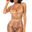 Key features of the Mapale Rose Garden Sheer Floral Mesh Gartered Bodysuit: