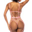 This sensual one-piece features elegant embroidered floral patterns against sheer nude mesh for a playful peekaboo effect, complete with rosy pink panelling accents to streamline your figure and tempt your lover to spring into action. The underwired cups give your bust the support, lift, and shaping it deserves to help your chest look its best while the cutout cups and V-shaped sternum keyhole create delicious windows of skin that peep through to keep all eyes glued on you. The wide, waist-defining centre band cinches your curves in and extends into the detachable suspenders, which you can leave off or add on to attach thigh-high stockings (sold separately) for head-to-toe hotness!