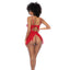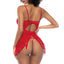 Key features of the Mapale Ruffled Sheer Mesh & Lace Open-Rear Babydoll & Thong: