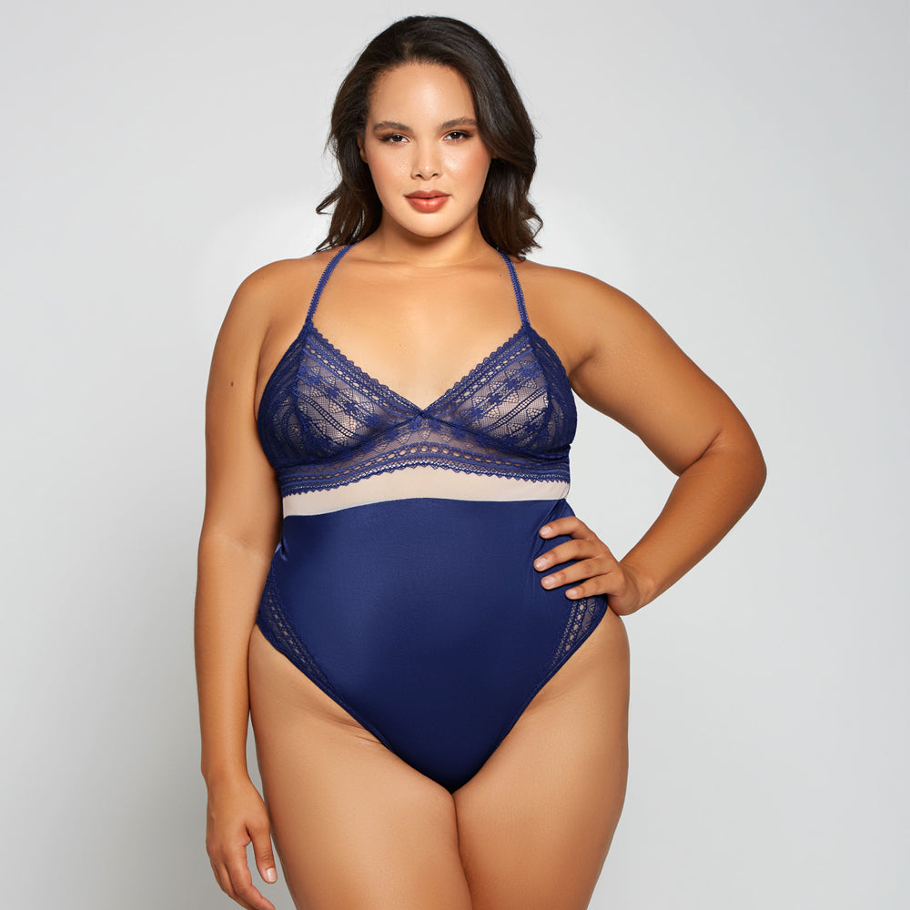 Indulge in understated elegance with the Plus-Size iCollection Clover Triangle Cup Lace & Microfibre Teddy!