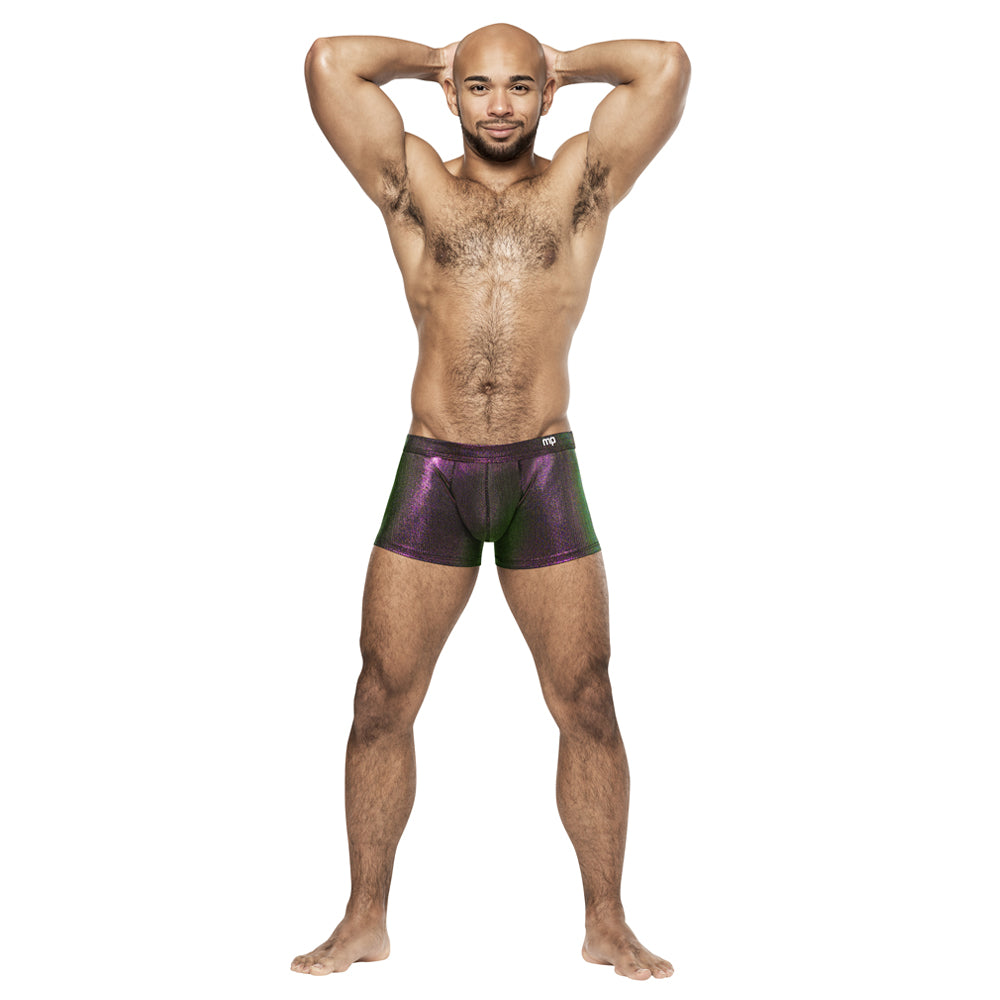 Make a statement in total comfort thanks to the Holographic Uplift Mini Short from Male Power's® Hocus Pocus range!