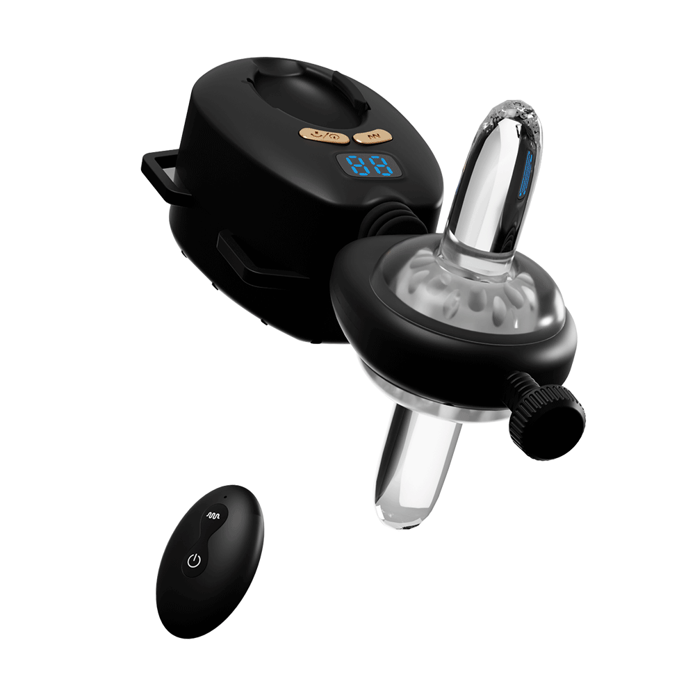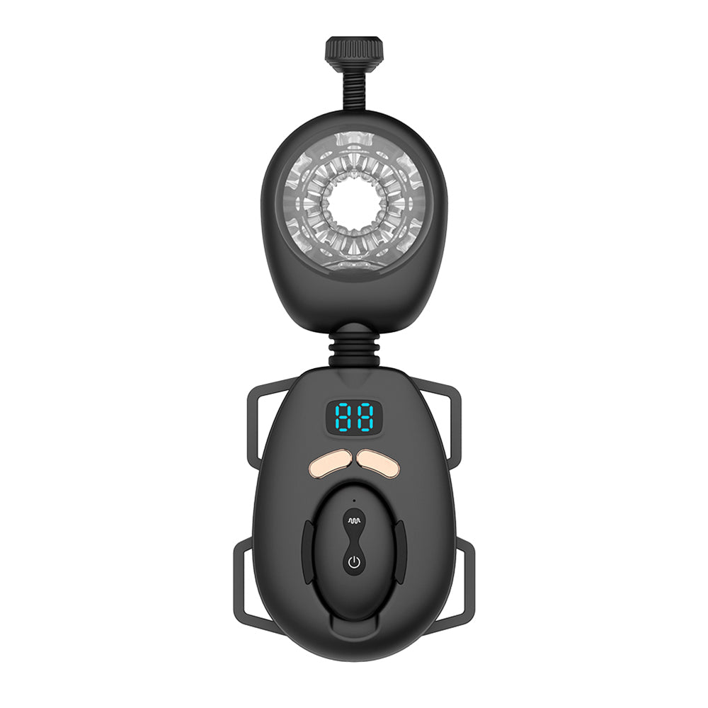 This automatic stroker toy is the next level of convenient penis pleasure and features a soft, textured TPE donut sleeve that pulls itself up and down your erection thanks to the innovative swinging arm above its holster! The holster itself has a large screw that compresses the sleeve around you so you can achieve your perfect level of tightness and texture intensity. The main power unit sports an LED screen that displays your settings and a pair of sleek buttons that let you control the 9 vibration modes and 9 swinging frequencies together or separately. You can also go truly hands-free with the wireless remote, or give it to a cheeky partner and let them take charge of your pleasure...