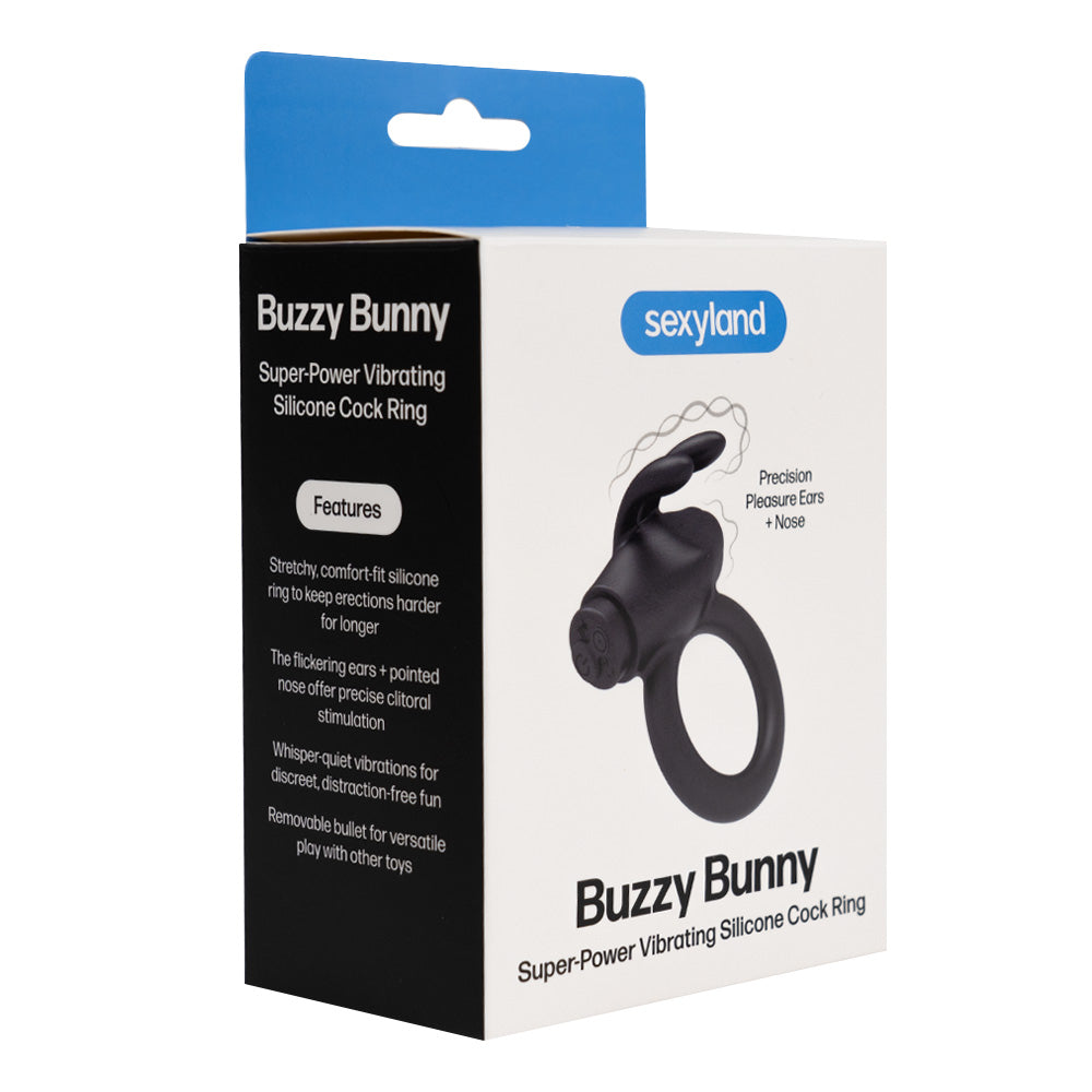 Looking for an easy way to enhance your solo or partnered playtime? The Buzzy Bunny Super-Power Vibrating Silicone Cock Ring by Sexyland is the perfect companion to boost your bedroom bliss!