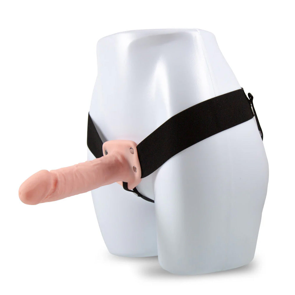 Feel confident in your bedroom performance with Dr. Skin's® 7" Firm Hollow Strap-On & Elastic Harness!