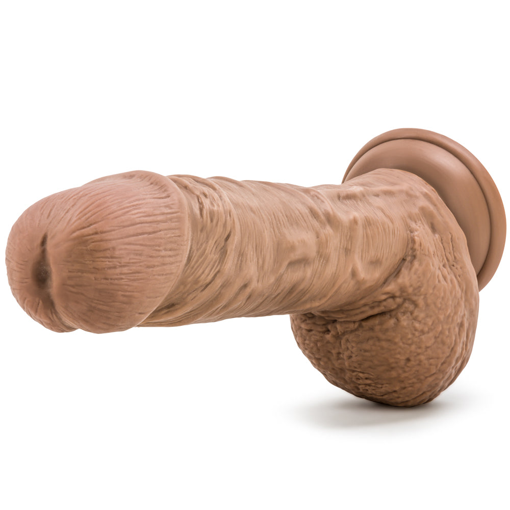 - Lifelike design with a ridged phallic head, girthy shaft & testicles
