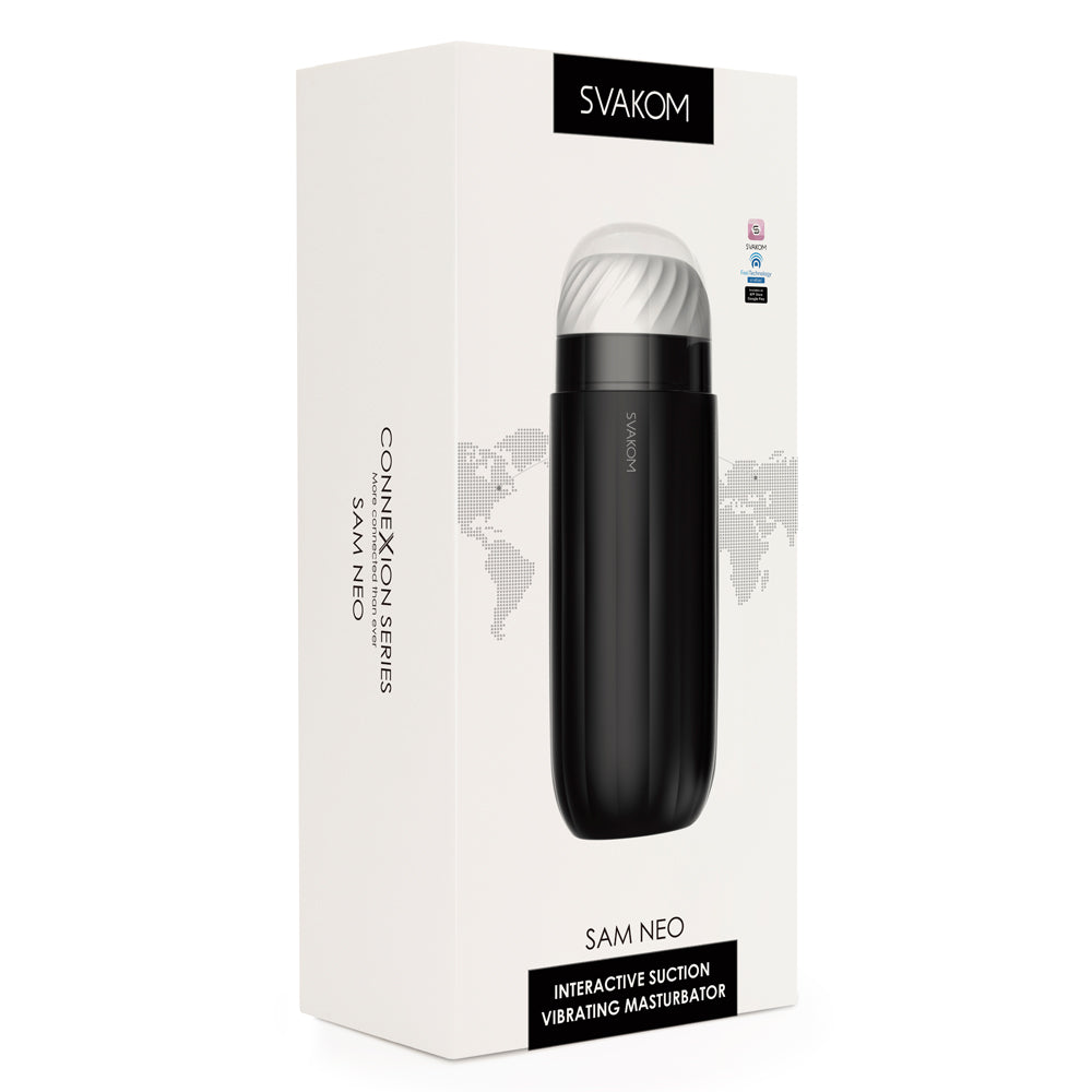 Key features of the Svakom Sam Neo Interactive Suction & Vibration Masturbator: