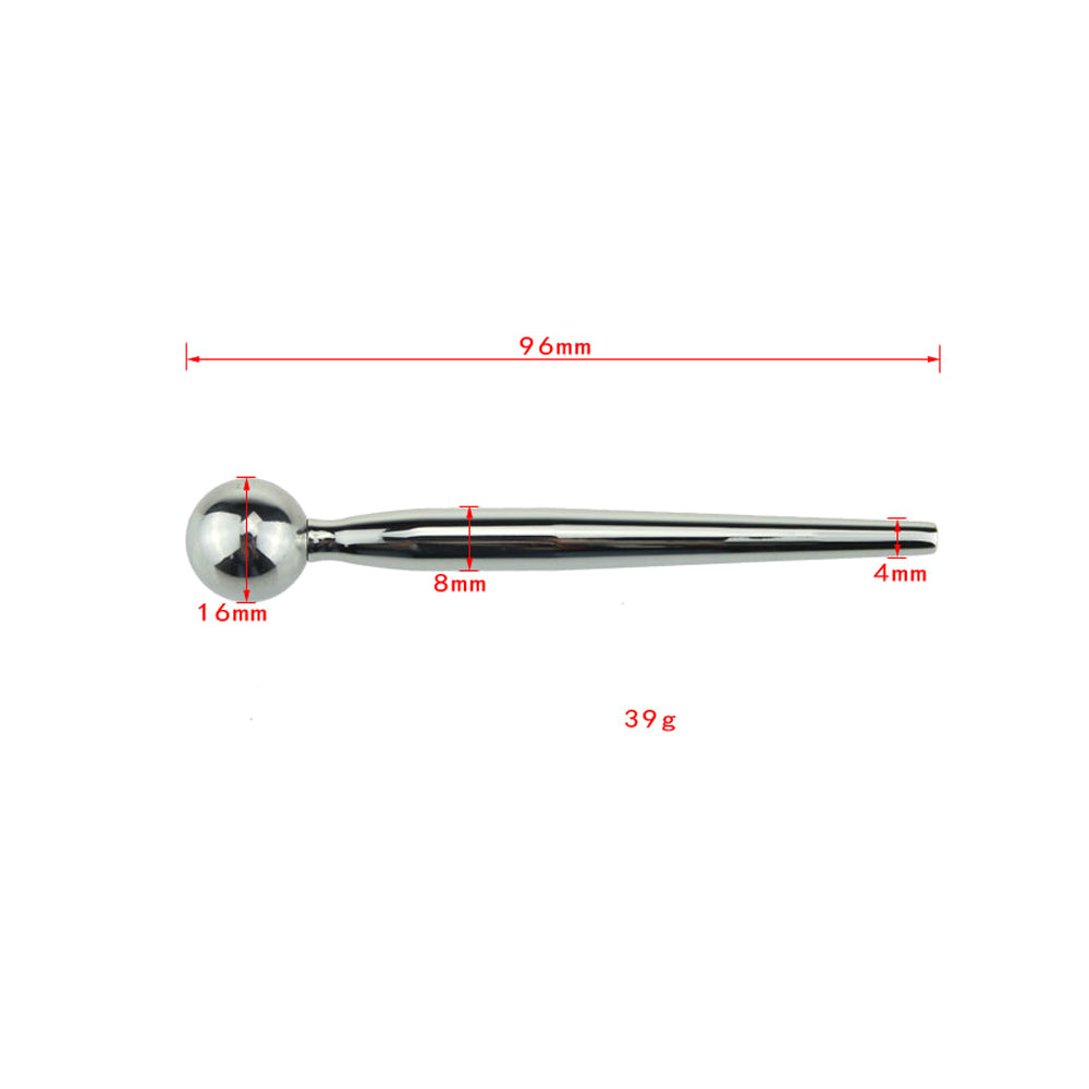 This stainless steel urethral sound has a solid design that widens towards the head to plug you fully and dilate the urethra. This puts pressure on the sensitive nerves inside your penis to create a new kind of intense stimulation that intensifies your orgasms and increases sensitivity! The ultra-smooth metal is compatible with all types of lubricants while the round head at the base prevents the sound from slipping any further than you'd like, as well as providing an easy handhold to remove the sound. Once your fun is done, the non-porous stainless steel is easy to clean with warm water and toy cleaner for a superior hygienic finish so your sound is ready to plug you all over again...
