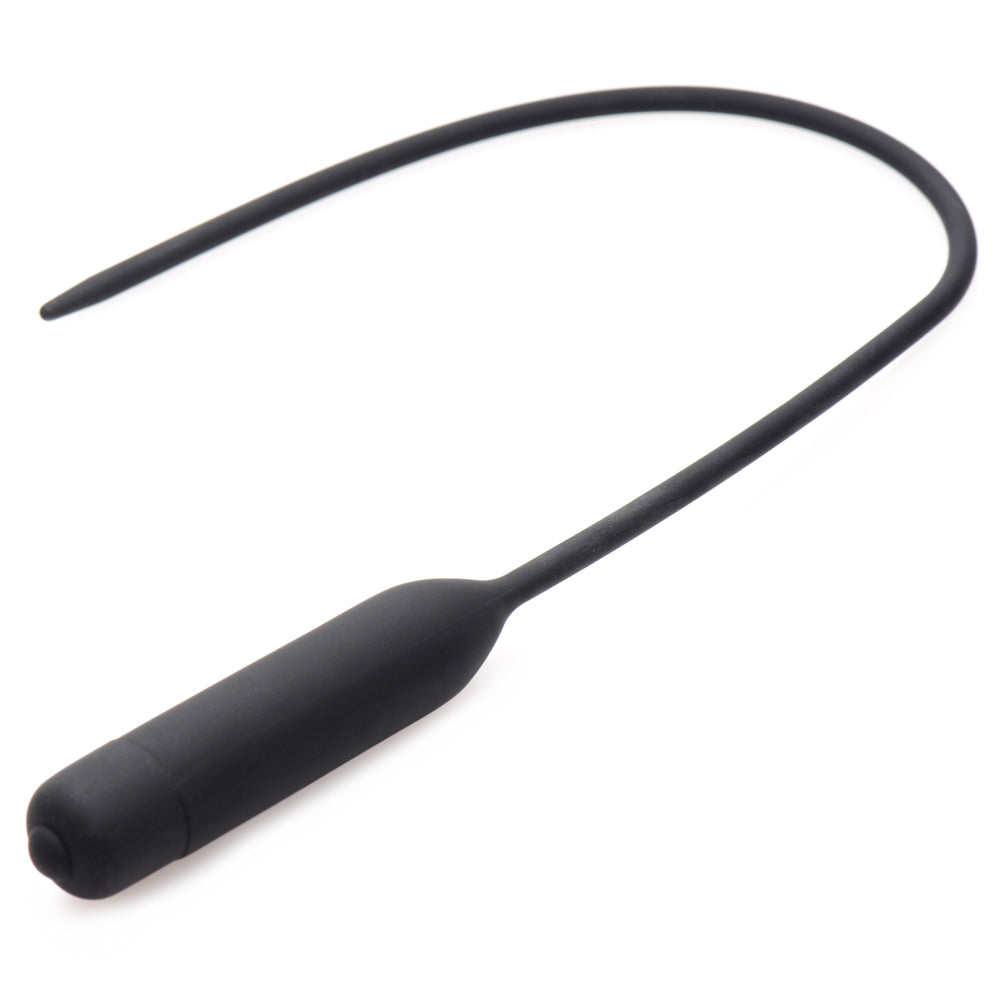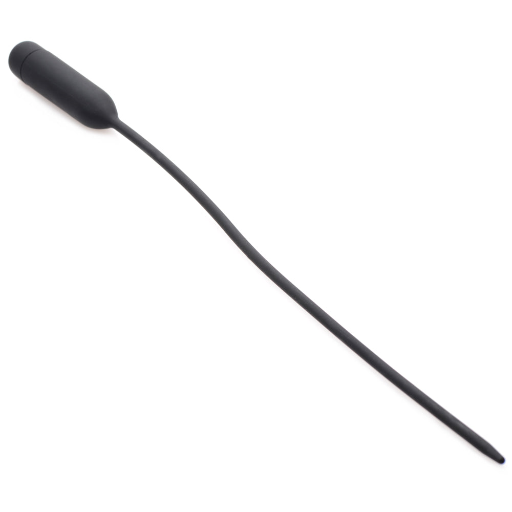 This sleek black penis plug is MS' longest vibrating sound and offers the unique sensations of urethral play with added vibrations to stimulate you from the inside out! It's made from buttery-smooth, flexible silicone that moves with your body and contours comfortably to the natural shape of your shaft while transmitting the vibrations all throughout your penis. Just tap the simple one-touch button to cycle through 3 steady vibration speeds and 7 pulsating patterns to find your perfect sensation!