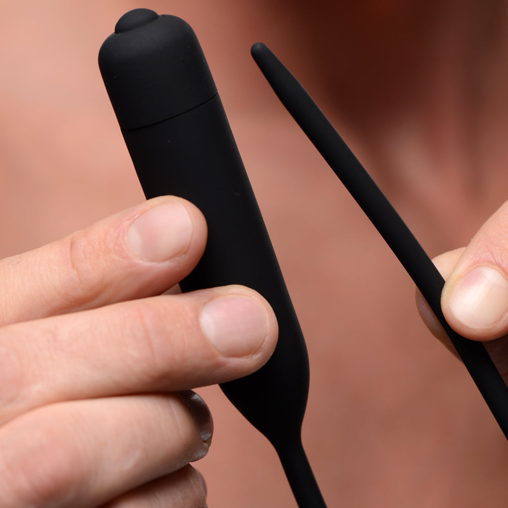 The Master Series Cadence Extreme 10x Vibrating Urethral Sound features a tapered tip for comfortable insertion, especially when you pair the silicone with a water-based lubricant. The wider stopper end houses the battery compartment and vibrating motor, and also makes removing the sound easy once your fun is done. The hypoallergenic silicone is waterproof for easy cleaning with water and toy cleaner so this vibrating sound is always at the ready for your next sounding session.