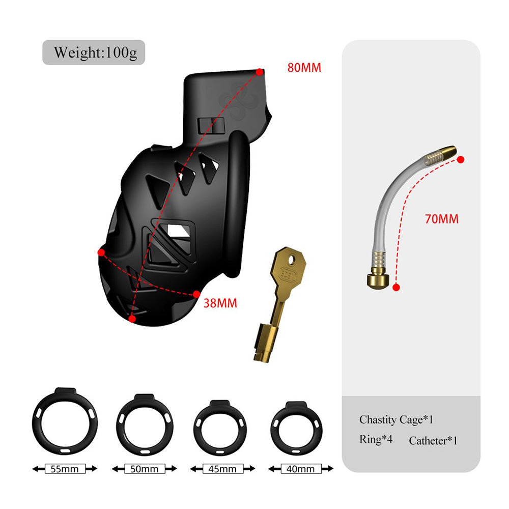 - Includes a metal padlock + 2 keys (1 spare) for an intense chastity experience