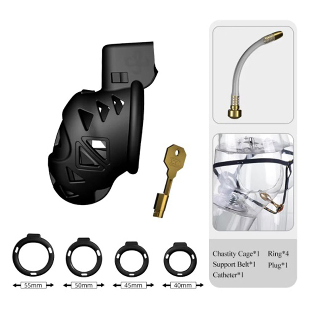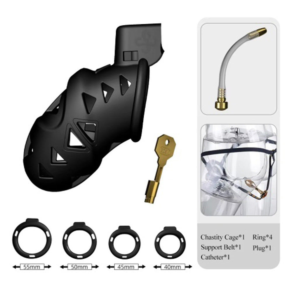 - Includes a metal padlock + 2 keys (1 spare) for an intense chastity experience