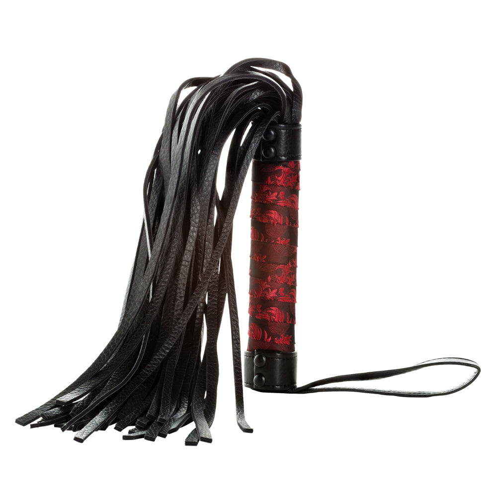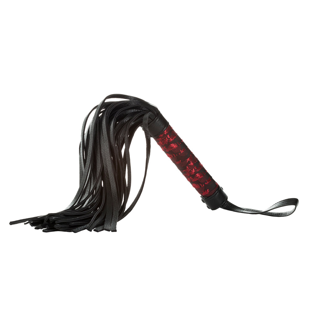 The fabric-wrapped handle of the Scandal Flogger is easy to hold and wield, and is adorned with Scandal's signature red and black brocade for a luxurious finish that's sure to look fabulous while hanging or on display! All the materials are vegan-friendly for wielders and recipients alike to enjoy.