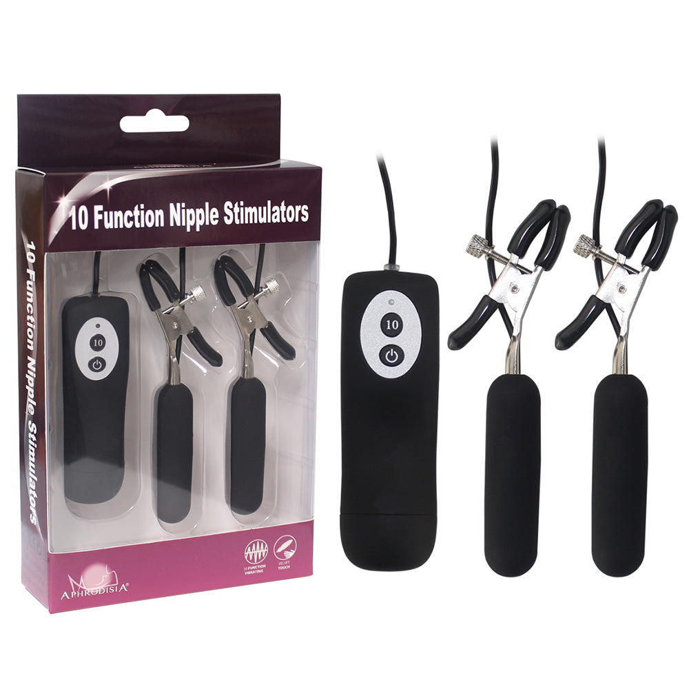 Tease your nipples the way they deserve with the 10-Function Vibrating Nipple Clamp Stimulators from Aphrodisia®!