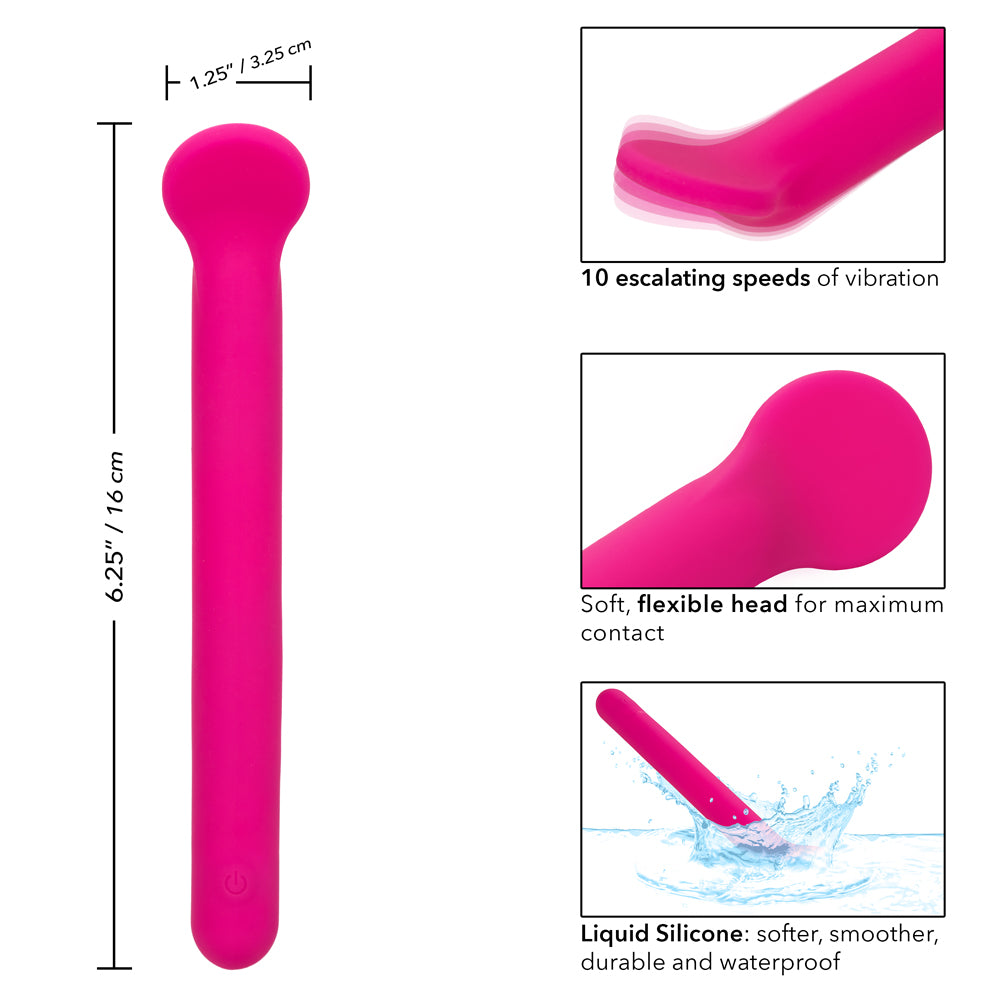 This new and improved version of CalExotics' bestselling Clitorrific is now made from silky-smooth liquid silicone for luxurious softness and a flexible head to suit your body and movements. The unique spoon-shaped tip is perfect for caressing your clitoris, as well as other external erogenous zones like the nipples and perineum. The tip is flattened with a scoop design to provide maximum contact with your body, perfect for delivering the 10 incremental vibration speeds with precision and power! There's also a memory chip to remember your favourite setting and pick up where you left off...