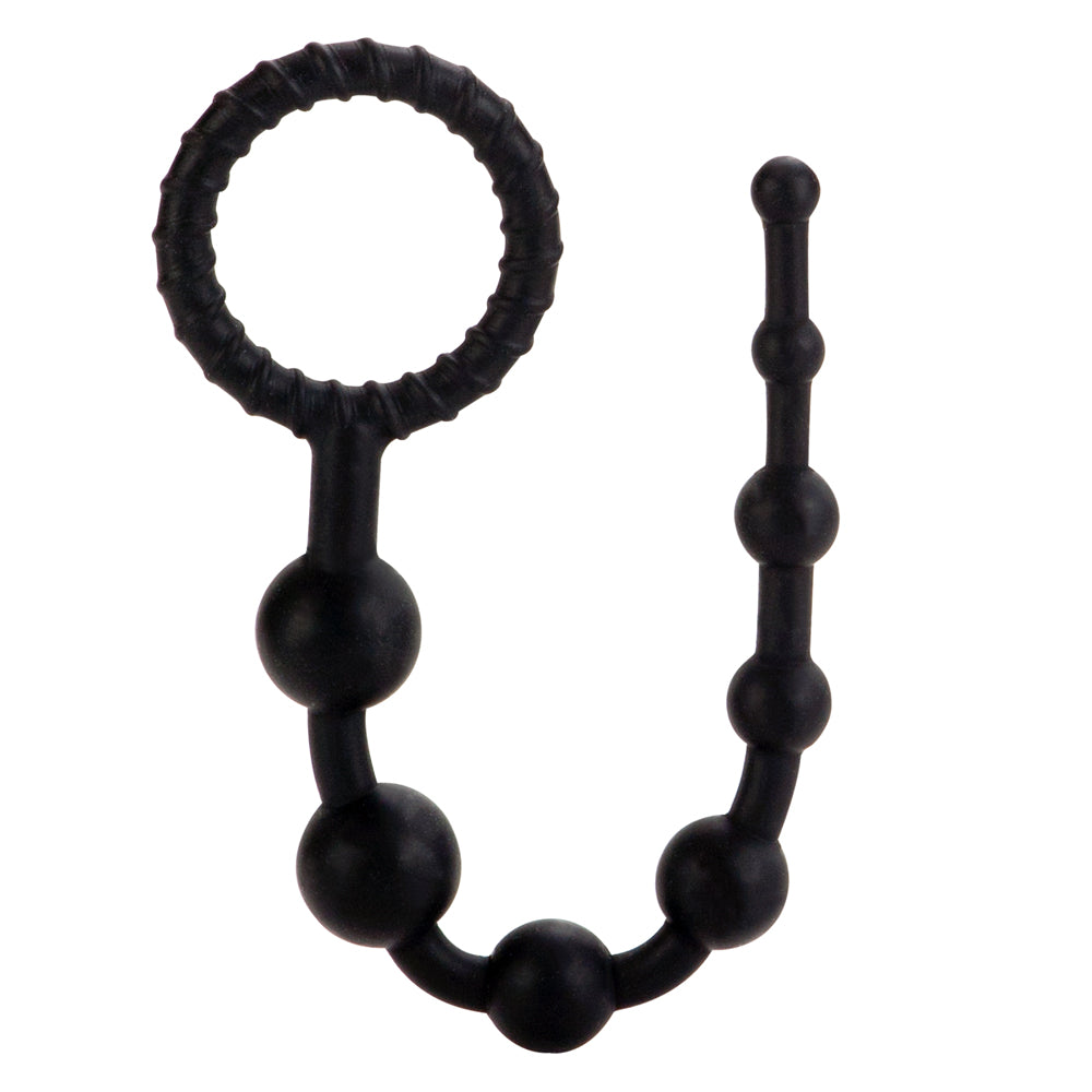 These ultra-bendy, super-flexible anal beads graduate in size so you can slowly work your way up to the larger beads and train yourself to reach the last one at your own pace. The Booty Call X-10 Anal Beads feature a large stopper ring that keeps the beads at a safe depth between your cheeks and also doubles as a retrieval loop so you can easily remove them when you've had your fill of fun. These X-10 Anal Beads are made from pure, waterproof silicone for a body-safe experience and are easy to clean with warm water and toy cleaner so they're ready to fill you with pleasure (and more) the next time the mood strikes!