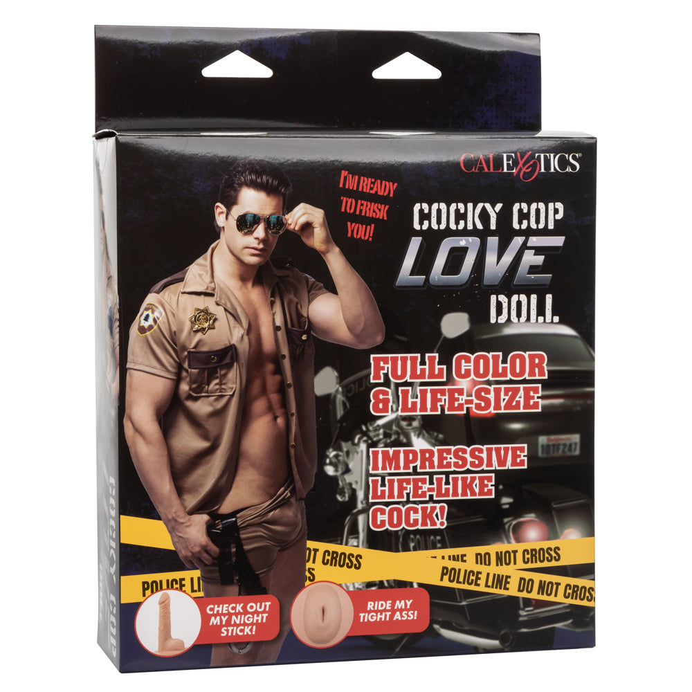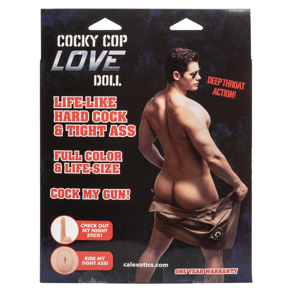 Lock and load your pleasure thanks to the Cocky Cop Inflatable Male Police Officer Love Doll With Dildo by CalExotics®!