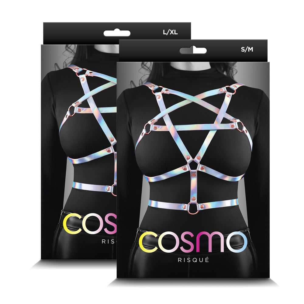 Key features of the Cosmo Risque Holographic Rainbow Pentagram Chest Harness: