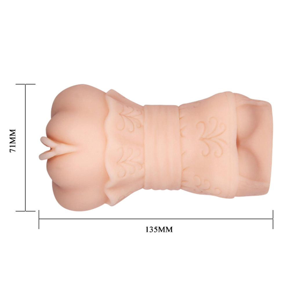 The Crazy Bull Snug-Fit Pussy's shape tapers in the middle to give you a great grip and is stylised with an enticing kimono-like design with bulging cleavage to keep you excited. The soft TPR material lets you adjust your grip by squeezing more or less, which helps you ensure the perfect pressure around your throbbing manhood. You'll never go back to using your hand on its own again!