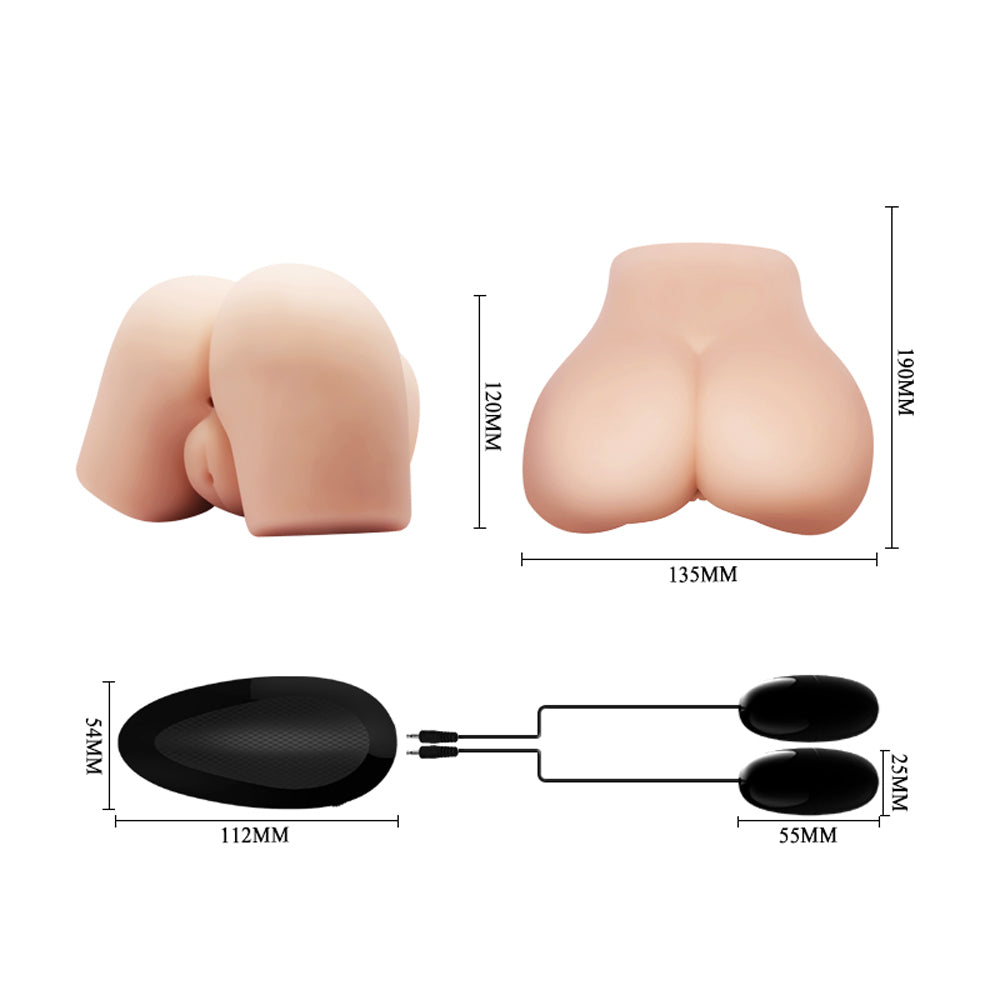 This lifelike men's toy offers incredible dual vaginal and anal entrances for you to enjoy, complete with a pair of plump cheeks that are just begging to be spanked. It also comes with 2 multispeed vibrating bullets you can insert into the toy's waist for even more stimulation on top of the tight and textured love canals! The battery-operated power supply has an easy-to-use scroll wheel that you can adjust to get your perfect vibration intensity and push yourself over the edge of ecstasy again and again...