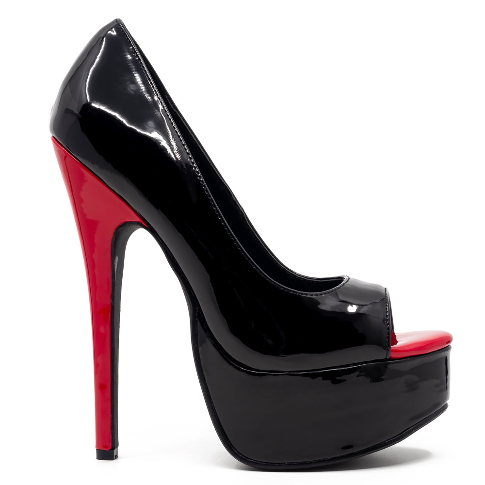 These platform heels are designed to stand out from the crowd with a bold contrast stiletto heel that won't distract from your stage presence, whether you're working the pole or performing in drag. They're made from vegan-friendly patent faux leather with a sleek finish that catches the light and makes you shine like the star you are! The 652 design features a 6.5-inch stiletto heel and a 2-inch platform with an open,  curved toe box that rocks forward and makes walking easier in these towering heels. The platform reduces the overall heel height for more comfortable wear while letting your toes peep out to lengthen your legs for a more streamlined look. Best of all, the separate sole and heel both feature textured rubber grips for more stability so you can strut your stuff in confidence!