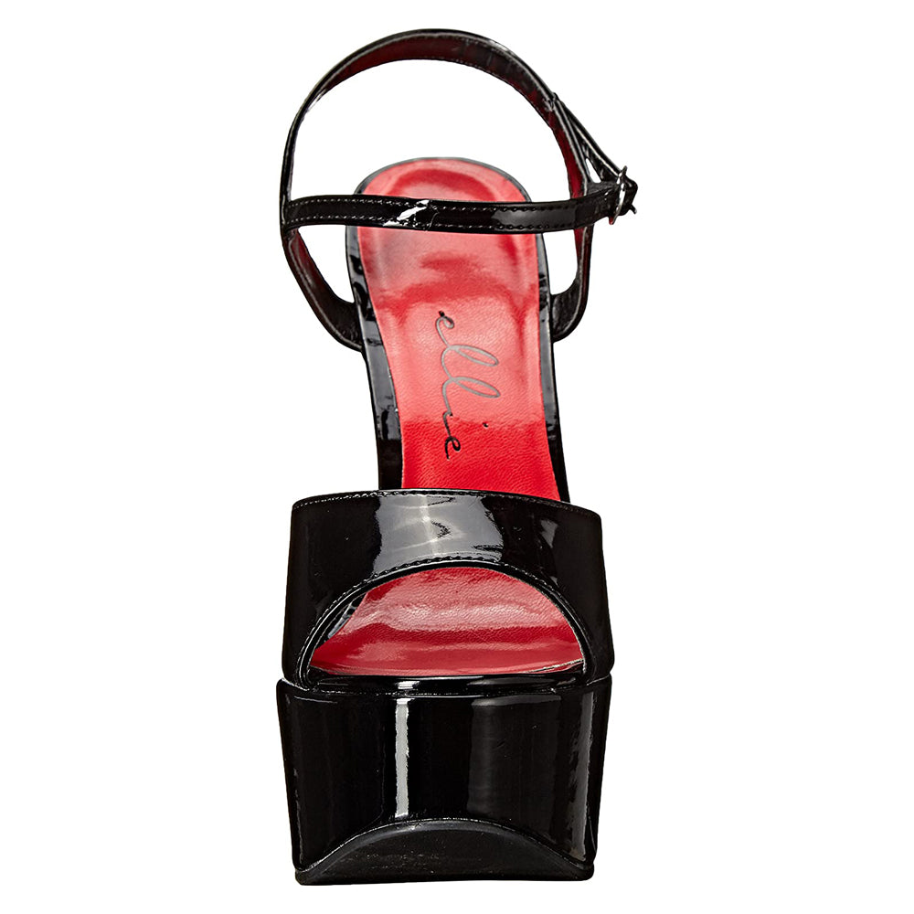 Key features of the Ellie Shoes Juliet 6.5" Stiletto Patent Platform Sandals - Black: