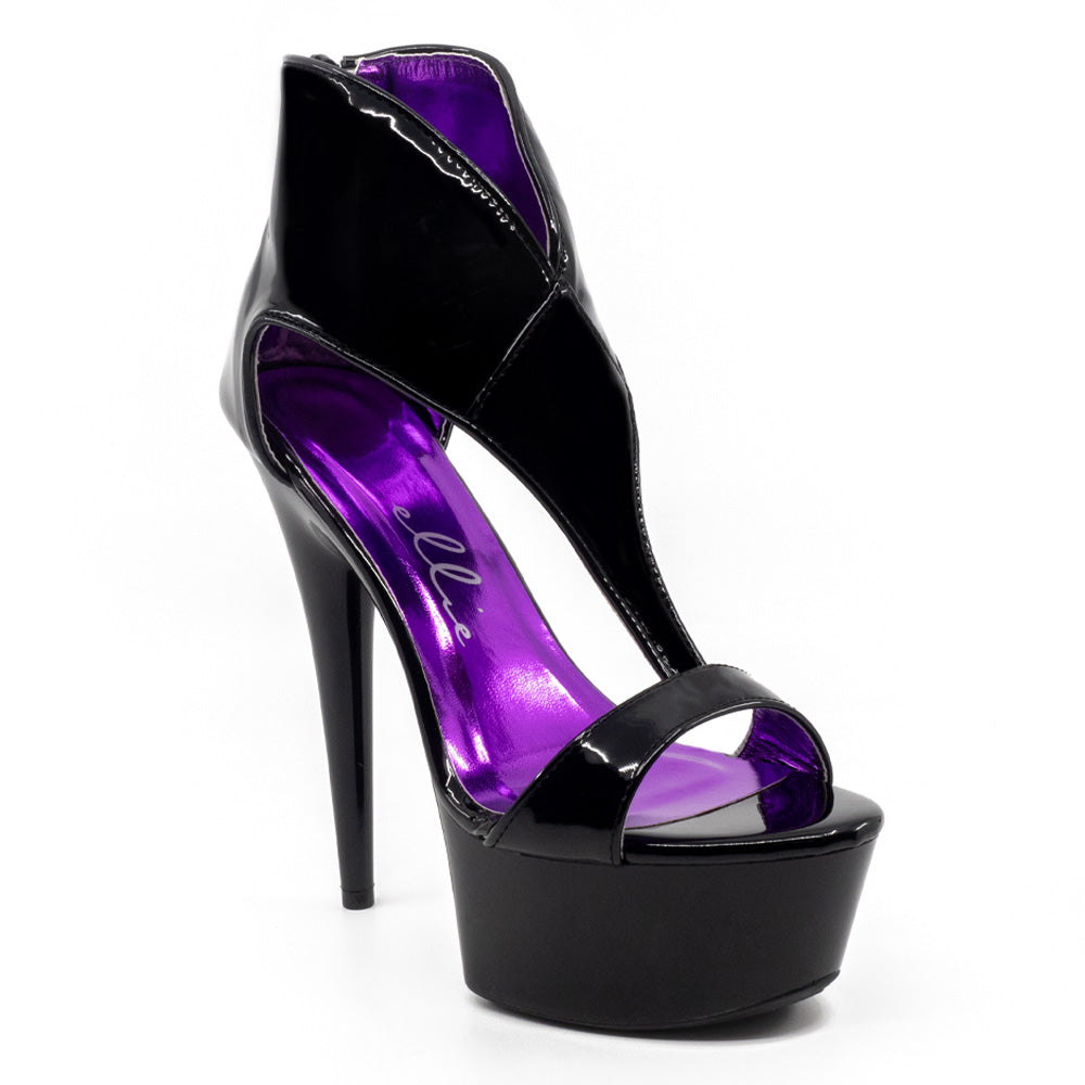 These black patent platform shoes have an ankle boot-like design for a taller silhouette around your feet with a low, elongated vamp running down the centre of your foot to make your legs look like they go on for miles. They're formed in Ellie Shoes' 609 design, with a 6-inch stiletto heel to elongate your leg and a 2-inch platform to make these high heels more comfortable to walk in. The rear zip closure secures this shoe around your foot, meaning you can kick, invert, and move however you like with total confidence and security! The closed heel is comfortable to wear against the back of your foot while the angled open-toe spring rocks with your steps to make walking and dancing easier. Both the sole and heel are made from the same solid base piece and sport textured rubber grips for more stability as you show off your moves on the dance floor, on stage around the pole, or on the catwalk!