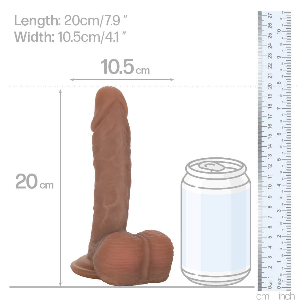 This adult toy is hand-sculpted from super soft Pure Skin® material that feels just like the real thing. It features realistic sculpted details, like a phallic head and veiny shaft, plus ultra-lifelike moveable testicles as the crowning touch!