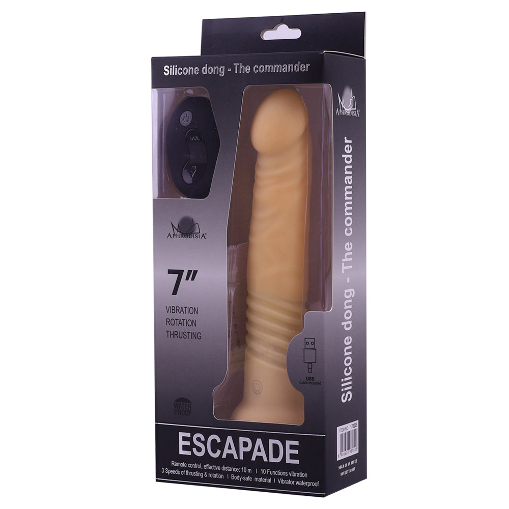 The Escapade Commander 7" Thrusting & Rotating Silicone Dildo is the multifunctional dong that truly does it all! It vibrates, rotates, and thrusts to give you the complete experience, offering multiple ways for you to achieve maximum satisfaction exactly how you want it.