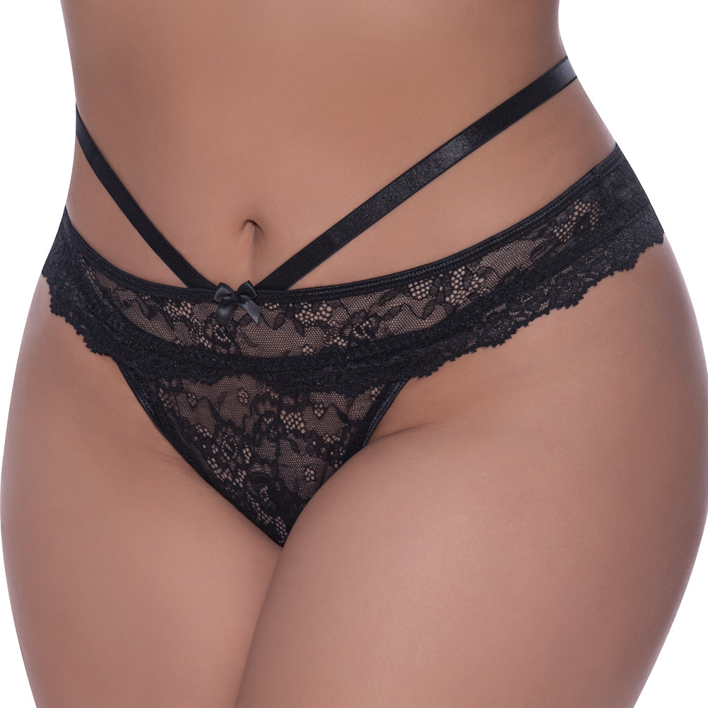 Feel like a confident, curvy queen in the Plus-Size Peek-A-Boo Cheeky Panty from Magic Silk's® Ooh La Lace collection by Exposed!