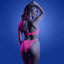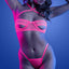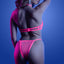 This fun lingerie set glows in the dark and is UV-reactive for an incredibly bright glow in black light environments. The underwired bra offers lift and support while the peekaboo cutouts reveal a tantalising sliver of underboob to keep any onlookers' eyes on you where they belong! The collared halter neckline meets between your collarbones with a metal O-ring detail, perfect for attaching some fun BDSM accessories (sold separately) like rope, leashes, or even cuffs to show your kinky side at any rave, festival, or black light party...
