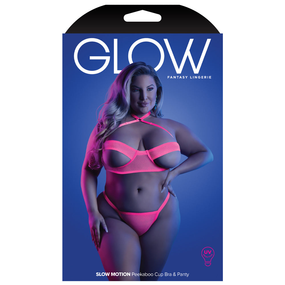 Put your curves (and a little more) on display at your next black light party, rave, or festival in the Plus-Size Slow Motion Peekaboo Cup Bra & Panty from Fantasy Lingerie's® Glow range!