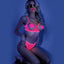 This alluring bra and panty set highlights your curves with its neon glow-in-the-dark colouring and sexy open cupless and crotchless designs to expose your assets. The Fantasy Lingerie Sweet Escape Lingerie Set has a high-cut panty leg makes your legs look miles long while also emphasising your hips and rear cheeks for a showstopper look from all angles. The underwired adjustable bra cup design provides some lift and support while the adjustable cage strap-style hook-and-eye closure and shoulder straps offer you your perfect fit. For extra visual impact, you can grab a pair of nipple pasties (sold separately) to spice up your bedroom fun once the lights go out!