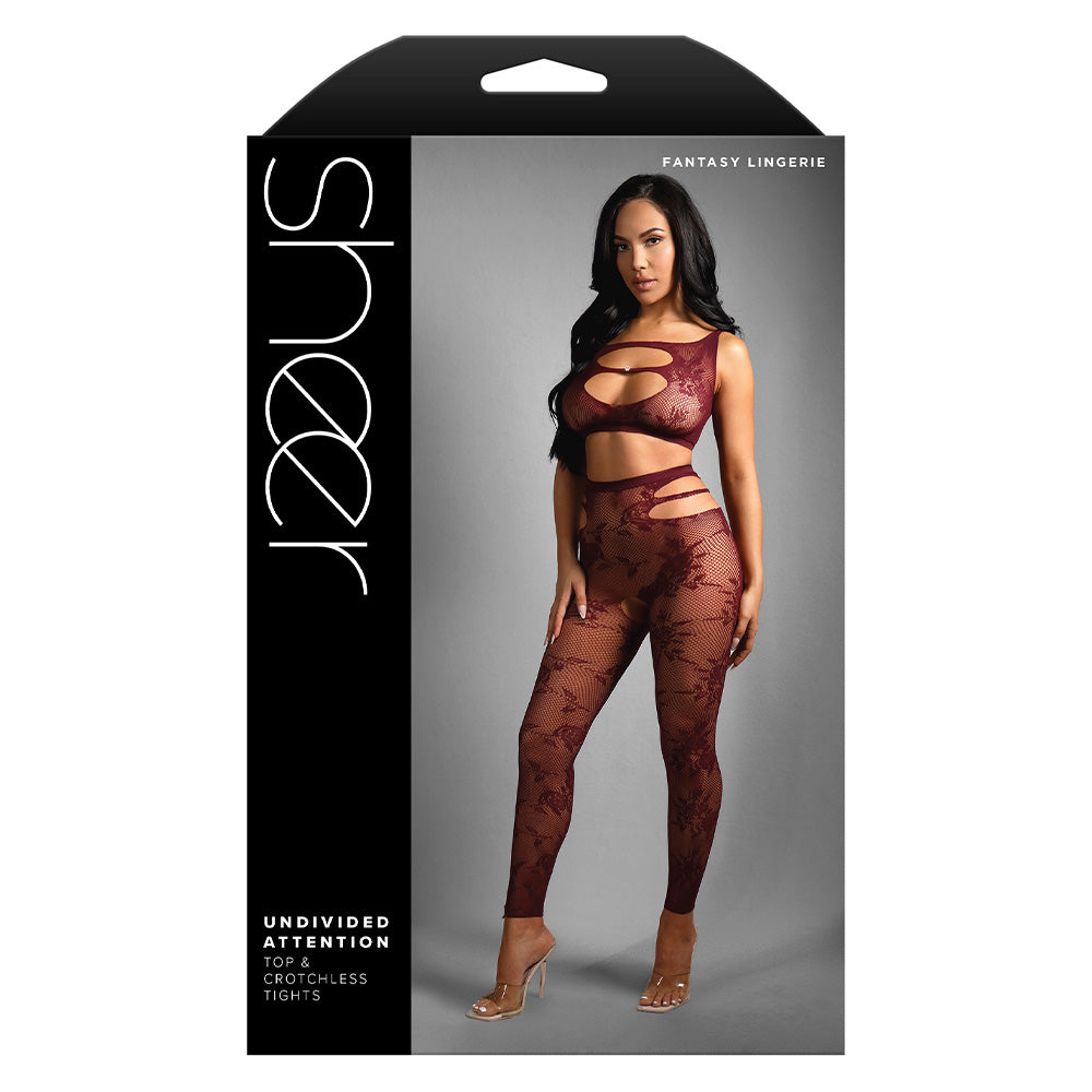 Turn heads your way all day and all night in Fantasy Lingerie's® Undivided Attention Top & Crotchless Leggings from the Sheer Fantasy collection!