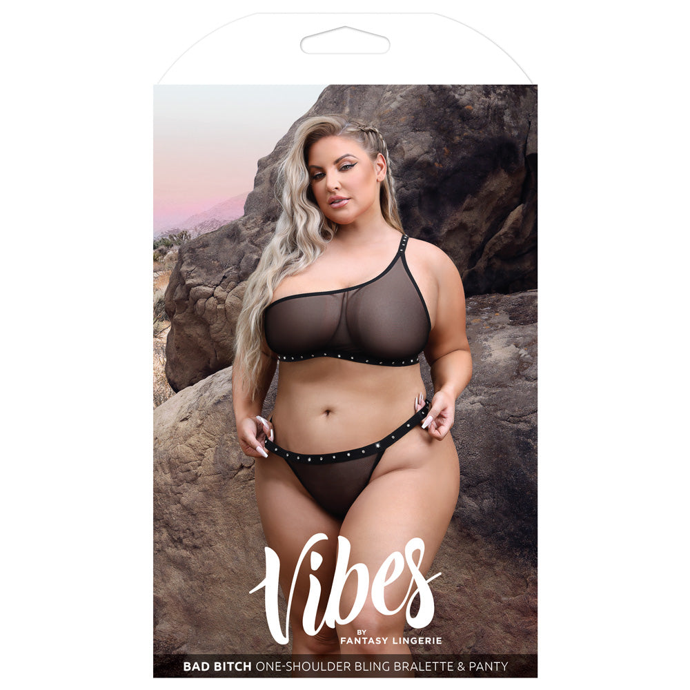 Key features of the Fantasy Lingerie Vibes Bad Bitch One Shoulder Mesh Bling Set - Curvy: