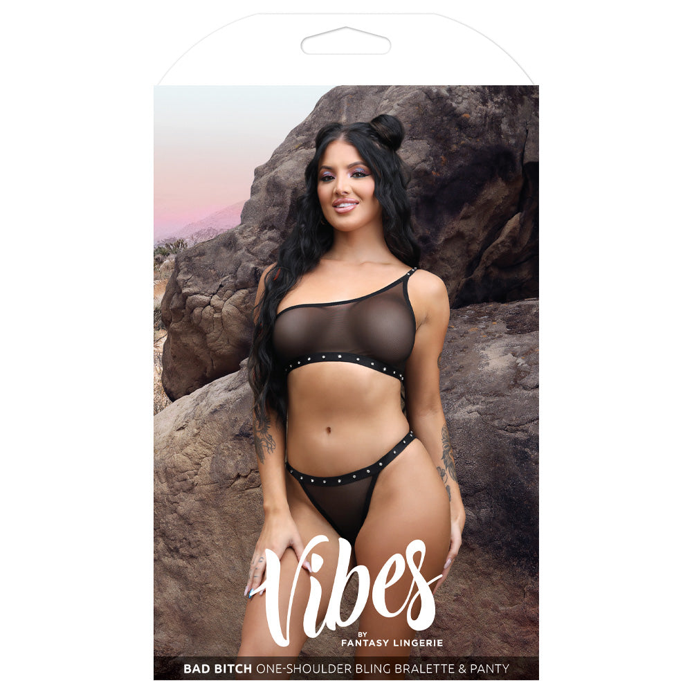Fantasy Lingerie Vibes Bad Bitch One Shoulder Mesh Bling Set
