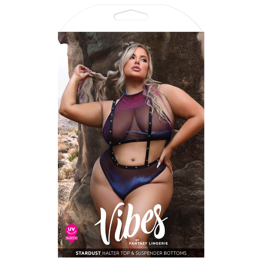 Key features of the Fantasy Lingerie Vibes Stardust Halter Top & Suspender Bottoms - Curvy: