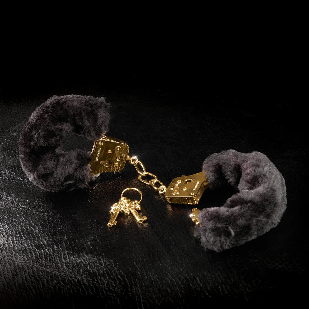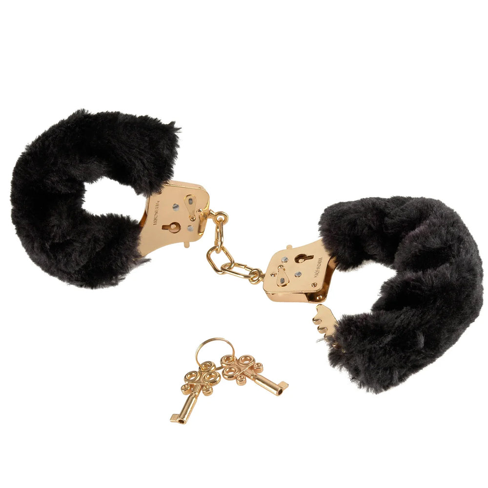 Lock your lover up in luxury with the Fetish Fantasy Gold® Deluxe Furry Metal Cuffs™!