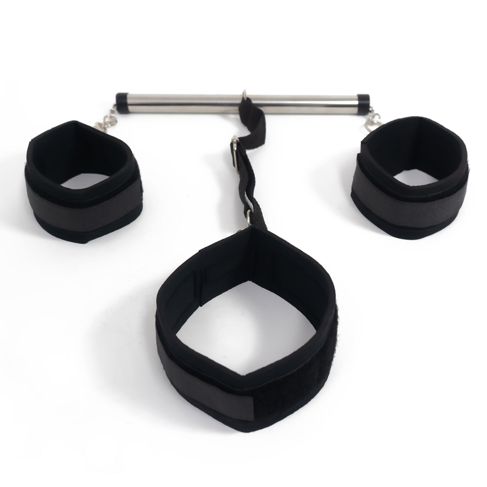 - 7-piece set with collar, wrist & ankle cuffs + a spreader bar each for arms & legs