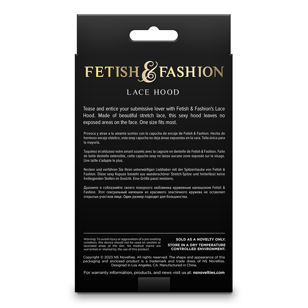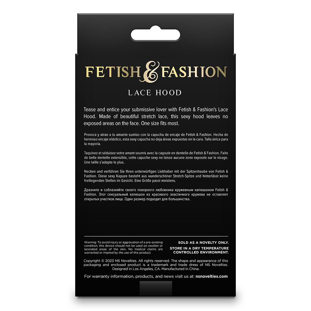 Please note that the Fetish & Fashion Full Face Lace Hood does not include a rear opening for high hairstyles. We recommend wearing this hood over your loose hair or gathering your hair into a low ponytail or braid if you have long hair.